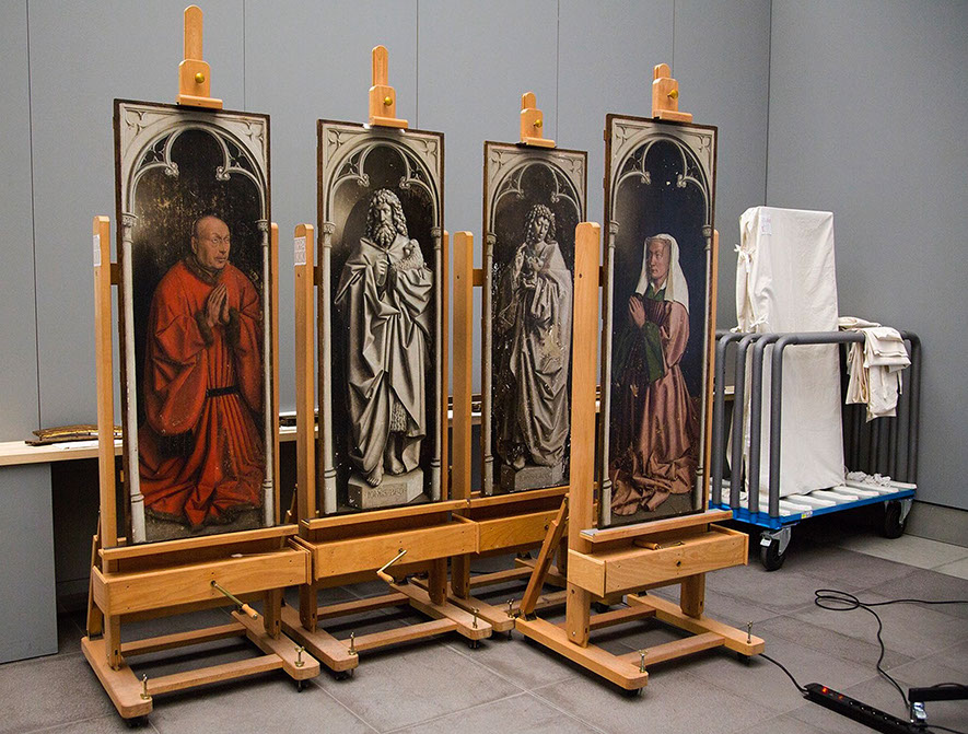 Teile des Genter Altars Im Restaurationsraum. Fotoquelle: closertovaneyck.kikirpa.be