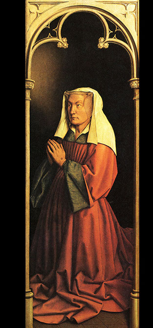 Genter-Altar, geschlossen. Rechter Aussenflügel: Betende Stifterin des Altars, Isabelle Borluut. closertovaneyck.kikirpa.be