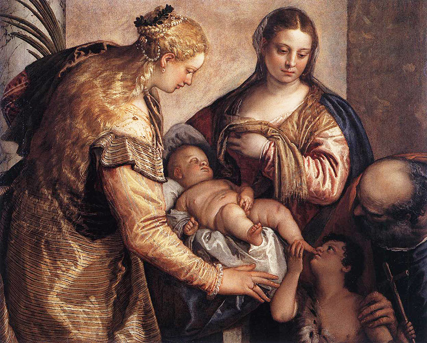 1570-Paolo Veronese (1528-1588). Hl. Familie mit Hl. Katharina und Johannes als Kind, 1570. Galleria Uffizi, Florenz.
