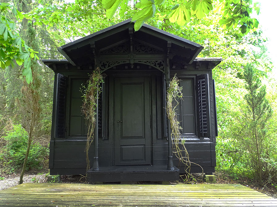 Isabelle Krieg (1971). Das einst weisse Häuschen am Weiher – jetzt ein schwarzes Haus. Für einen Sommer.