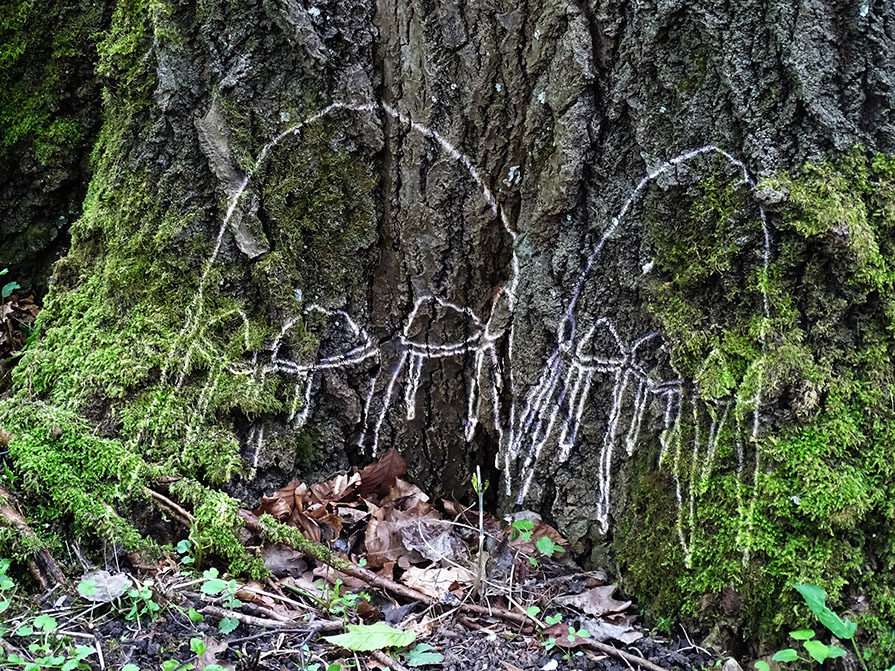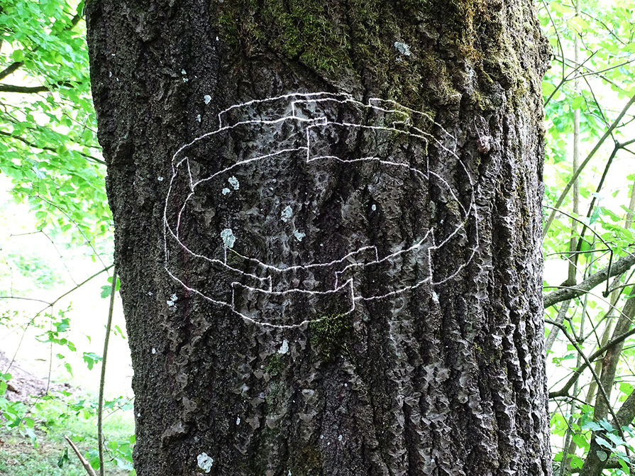 Judith Albert (1969). Lichtzeichnungen an Baumstämmen. Videoinstallation.