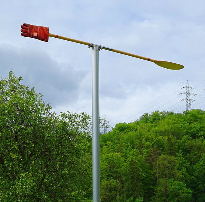 Roman Signer (1938). Die Windfahne. Feuerwehrhandschuh und Paddel.