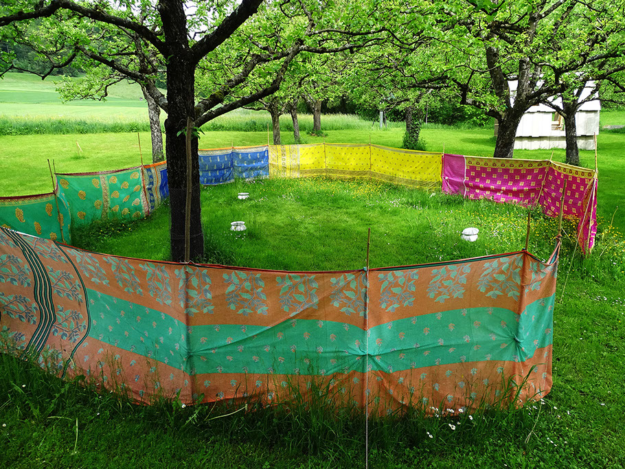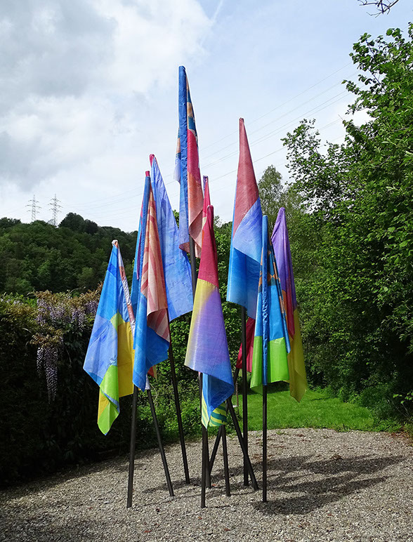 Martina Buzzi (1985) und Nicolas Buzzi (1987). Wind of Change, 2023. Flatterfahne und Klangkörper.