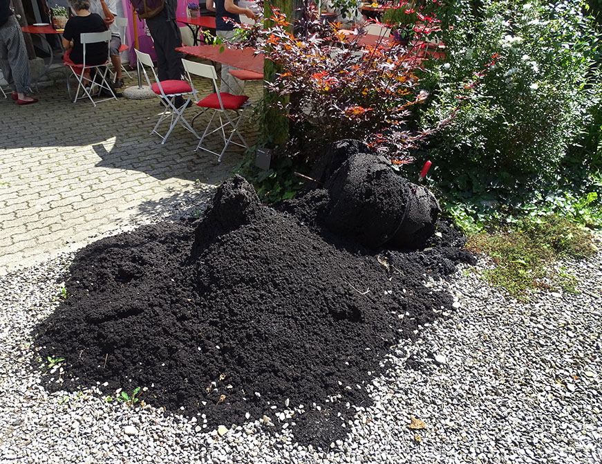 Katja Schenker. Efa, der Schneemann aus Asphalt am Ende der Ausstellung.