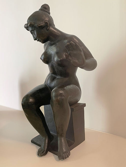 Aristide Maillol (1861-1944). Sitzendes Mädchen, sich die Augen bedeckend, Bronze. Kleinskulptur.