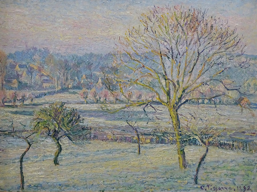 Camille Pissarro (1830-1903). Le grand noyer, gelée blanche avec soleil, Eragny, 1892.