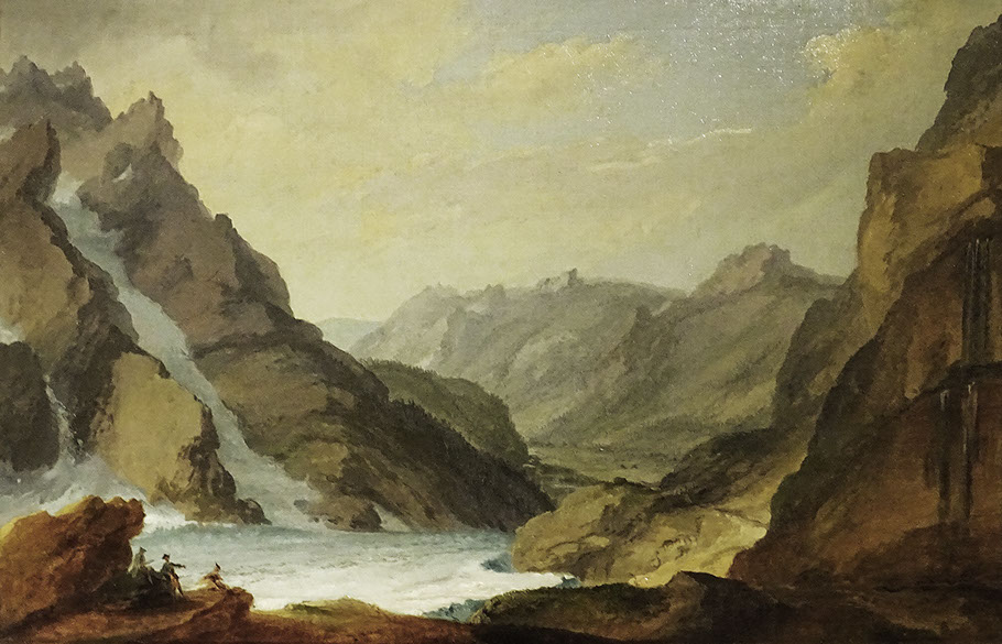 Caspar Wolf (1735-1783). Brücke und Dalaschlucht in Leuk, 1774-77. Musée d'Artdu Valais Sion.