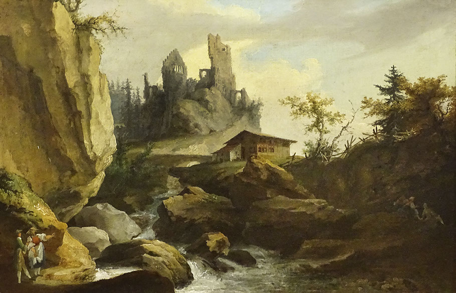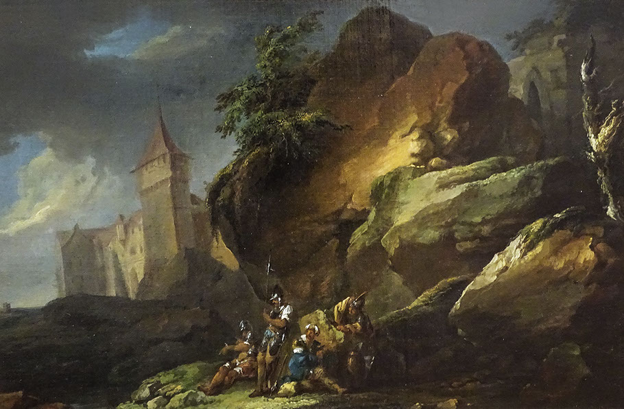 Caspar Wolf (1735-1783). Felsenlandschaft mit Burg und rastenden Kriegern, 1770. Stiftung Murikultur.