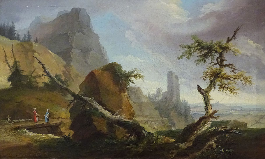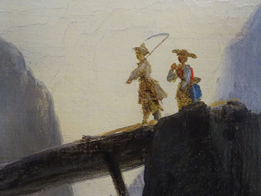 Caspar Wolf (1735-1783). Brücke und Dalaschlucht in Leuk, 1774-77. Detail. Musée d'Artdu Valais Sion.