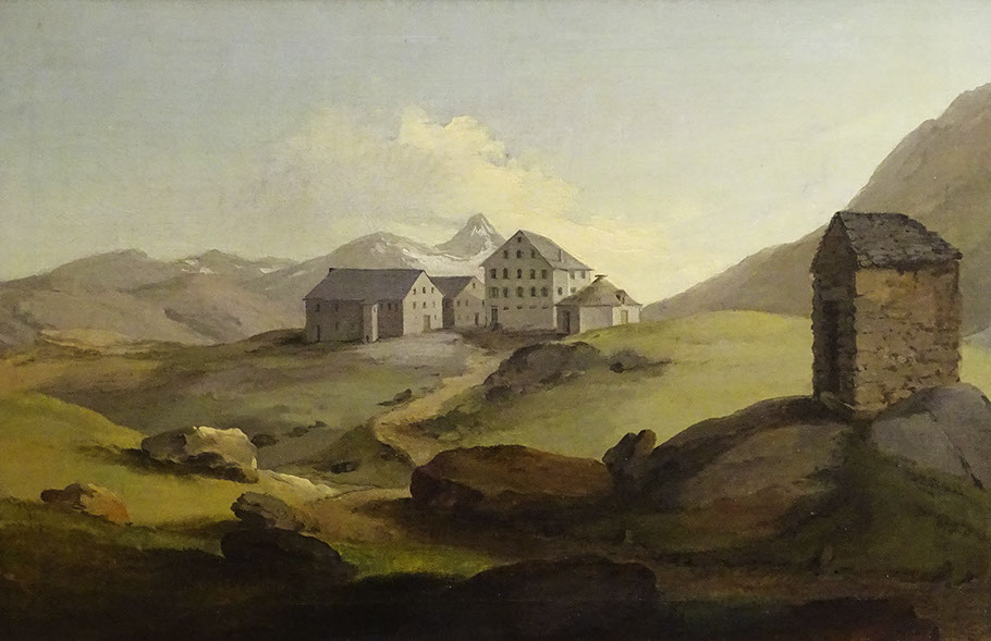 Caspar Wolf (1735-1783). Hospiz Gotthard-Passhöhe und Wegkapelle, Orseria und Winterhorn, 1777. Kantonalbank Aarau.