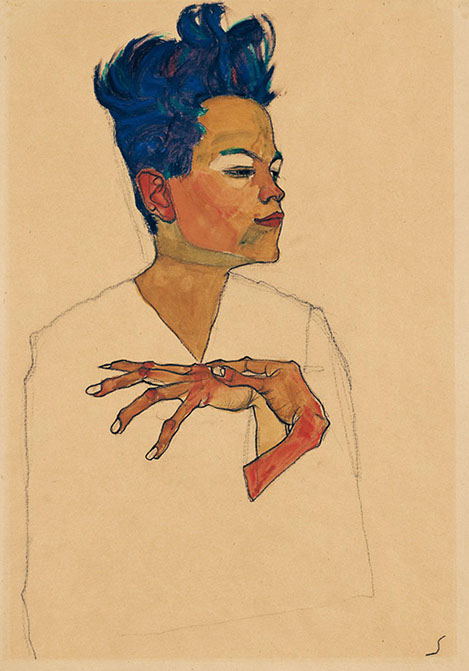 Egon Schiele (1890-1918). Selbstporträt mit an die Brust gelegten Händen, 1910. Stiftung Sammlung Kamm.