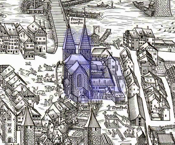 Wie kam Ludwig auf die Idee, in Zürich ein Kloster zu gründen? Vermutlich, weil er seiner ältesten Tochter Hildegard eine standesgemässe Versorgung sichern wollte. Ludwig überschrieb Hildegard ein an dieser Stelle bereits bestehendes kleines Kloster und stattete es mit dem Markt- und Münzrecht aus, zudem mit beträchtlichem Grundbesitz, der bis ins Urnerland reichte.