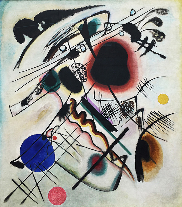 Anders das Werk «Schwarzer Fleck» aus dem Jahr 1921. Dieses ist ein Musterbeispiel für die gegenstandslose Abstraktion, denn es enthält jetzt keine erkennbaren Motive mehr, sondern besteht nur noch aus einer Kompilation von kaum definierbaren Formen und Farben.