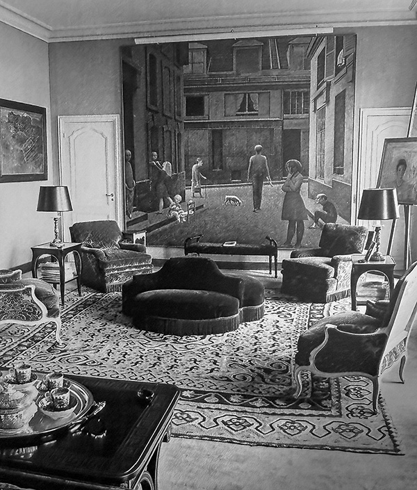 Dieses monumentale Gemälde – seit Jahren in der Fondation Beyeler zu sehen – hing in den 1960er-Jahren in der Pariser Wohnung der Hersaints. Damals steckte Balthus in finanziellen Schwierigkeiten und Hersaint gehörte einer Gruppe von Mäzenen an, die den Künstler unterstützte. Als Gegenleistung kam Claude Hersaint zu diesem Gemälde. Um eine genügend grosse Wand zu finden (das Gemälde misst 294 x 330 cm!), musste die Familie umziehen. In der Avenue Henri Martin in Paris wurde man fündig und installierte das Bild im Salon.