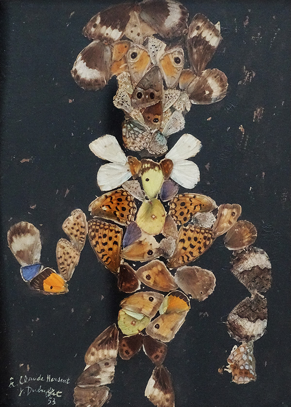 Sein Werk Personnage en ailes de papillons ist eine Collage aus Schmetterlingsflügeln, mit der er die Grenzen des Mediums Malerei erweitern konnte. Das ebenso feine wie eindrucksstarke Bild misst nur 24x18 cm.