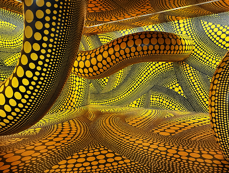 Ihre «Polka Dots» sind zu Ikonen geworden. Sie sind charakteristisch für ihr künstlerisches Werk, spiegeln aber auch dramatische Erlebnisse in ihrer Kindheit wieder. Polka Dots malt die heute 96-jährige Japanerin immer noch, überall und endlos. Auf Papier, Leinwand, auf Skulpturen ...und in Rauminstallationen wie jetzt in der Fondation Beyeler in Riehen.