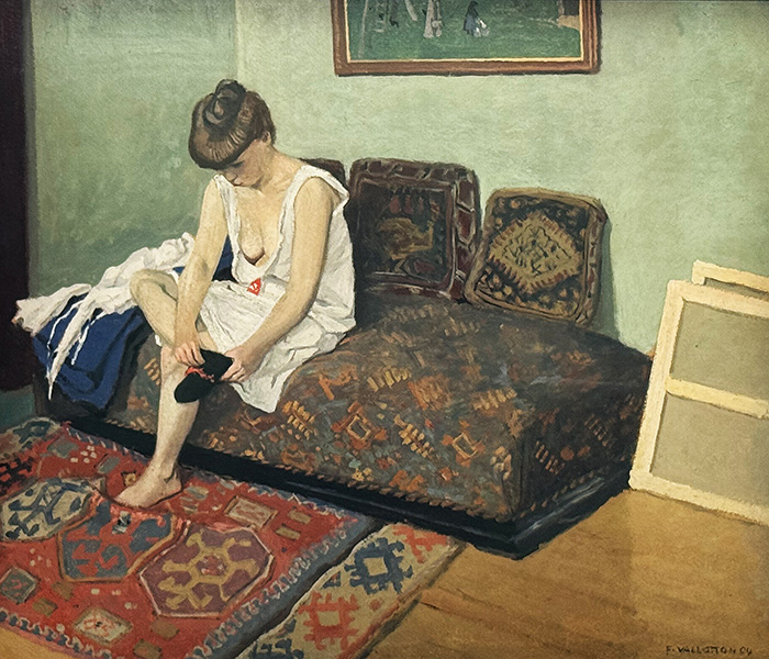 Frauenakte sind Vallottons bevorzugtes Sujet. Er malt sie sein ganzes Künstlerleben lang und bezeichnet sich selbst als Aktmaler. In seinem Werkverzeichnis listet er total 1700 Gemälde auf – darunter sind rund 600 weibliche Akte.