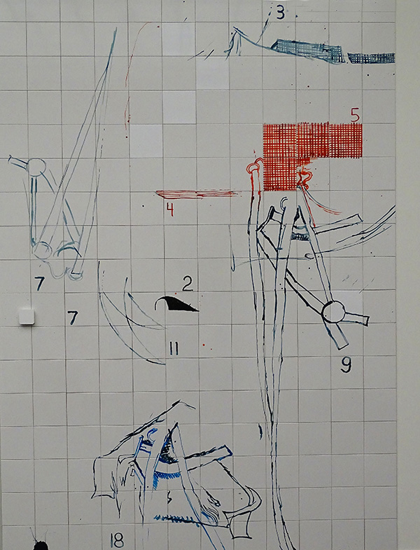 Matias Faldbakken schliesslich nimmt sich das berühmte Gemälde von Arnold Böcklin vor: «Der Krieg» von 1897. Faldbakken habe «Böcklins Technik des Rasters und der Übertragung des Motivs übernommen, um eine grosse Version auf weissen Keramikfliesen zu erstellen» – heisst es im Begleittext. Die Kachelzeichnung sei keine Blaupause von Böcklins Originalmotiv, sondern eine «vergrösserte und entstellte Version». Allerdings.