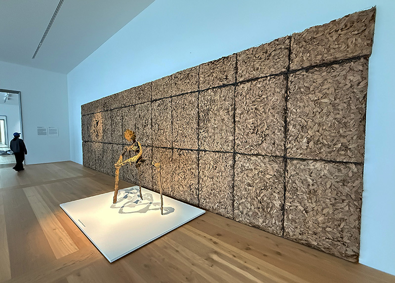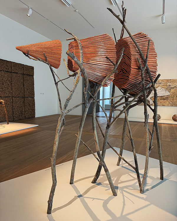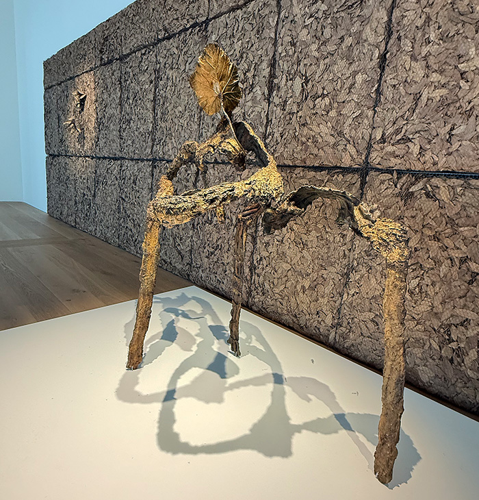Grand geste végétal no. 1, 1983, zeigt sich als hybride pflanzliche Skulptur. Äste, Baumrinde und Blattwerk sind zu einem skulpturalen Objekt in Bronze gegossen. Die Plastik steht vor einem wandfüllenden Konstrukt aus Lorbeerblättern mit dem Titel Respirare l'Ombra, 2005. Die getrockneten Lorbeerblätter werden von einem metallenen Gitter zusammen gehalten.