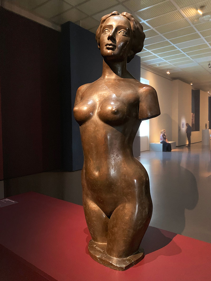 Die wunderschön präsentierte Ausstellung – gediegen einzeln angeordnete Werke in bester Ausleuchtung – zeigt nicht nur rund 70 Werke von Matisse, sondern stellt diese auch dem Schaffen von anderen Bildhauern gegenüber. Darunter sind Grössen wie >Rodin, >Maillol, Bourdelle, >Renoir und >Picasso. Ganz berühmte Werke sind dabei, wie Rodins «femme accroupie» oder Klassiker wie die «Jeunesse» von Maillol. Vor allem im Vergleich mit den akademisch-naturalistischen Plastiken von Maillol und Renoir zeigen sich die Unterschiede zu Matisse's Werken ganz eindrücklich.