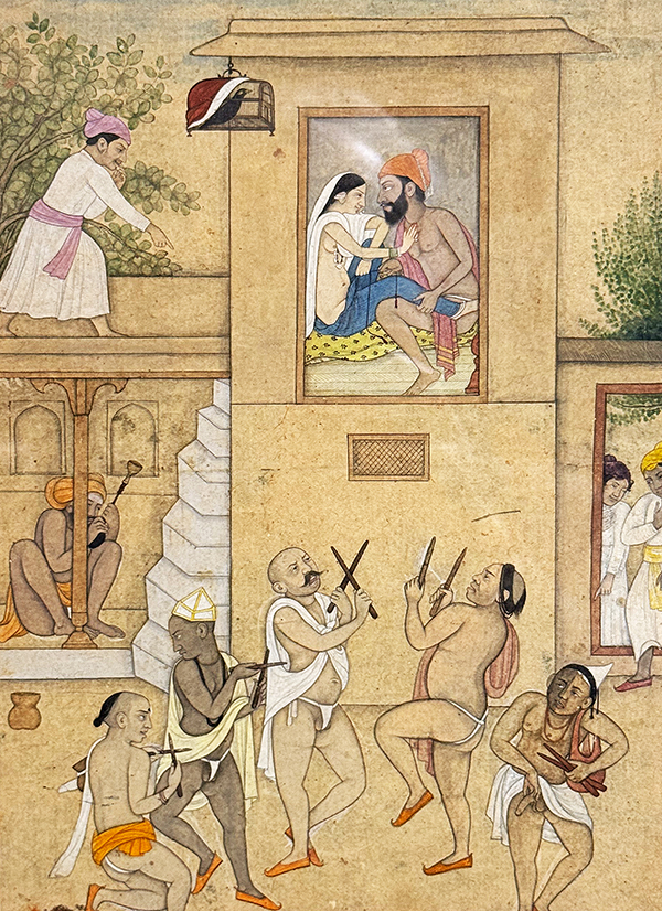In dieser Epoche schufen Künstler aus Guler Miniaturen für kunstliebende Fürsten, oft mit Darstellungen aus dem Leben Krishnas oder den Taten von Göttinnen. Und offenbar auch von «verrufenen Orten», denen sich auch Männer untereinander vergnügten.