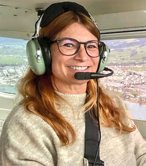 Im Herzen ist sie Alpinistin. Sie hat schon 20 (!) Viertausender bestiegen – darunter den Montblanc und das Matterhorn. Dazu den Kilimandscharo und den Elbrus – die Kamera stets dabei. Eines Tages kommt in ihr der Wunsch auf, ihre Berg- und Traum-welten von oben zu erleben. Also entschliesst sie sich, Pilotin zu werden. Jetzt sieht sie die Alpenwelt aus einer neuen Perspektive. Zwingend wäre ein Flugbrevet allerdings nicht gewesen, denn ihre hoch professionellen Fotos aus der Luft lassen sich kaum 'so nebenbei' schiessen, während sie ihre Cessna steuert. Bei der Suche nach spektakulären Airviews ist sie nur Co-Pilotin ...und lässt sich fliegen.