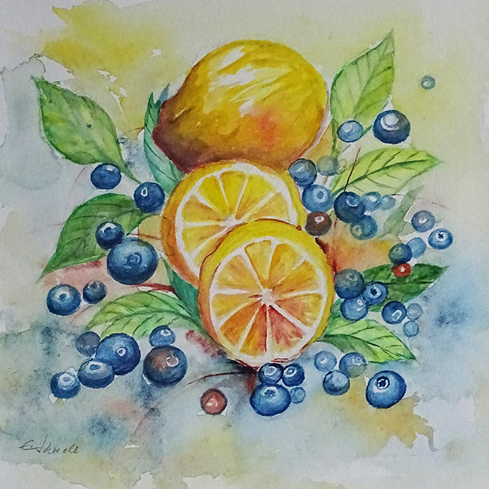 Erika Schnell (1931). Sauer und süss, Aquarell, 40x40cm.