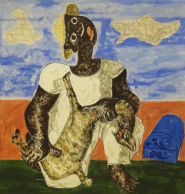 Er interessiert sich für die Indigenen, hat aber keinen direkten Kontakt zu ihnen. Besonders die Keramiken des präkolumbianischen Marajoara-Volkes aus dem Amazonasgebiet fazinieren ihn. Das hinterlässt Spuren in seinen Darstellungen reliefartiger Figuren in erdiger Farbigkeit und stark reduziert auf einfache Formen.