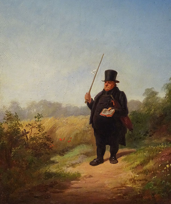 Manchmal tragen sie Züge von Karikaturen. Aber Spitzweg ist kein Karikaturist, er malt einfach die kleinen Schwächen seiner bürgerlichen Mitmenschen. Er parodiert sie, aber stets liebevoll.