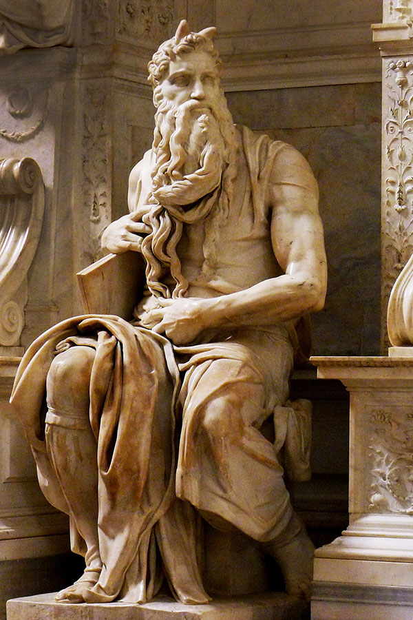 Michelangelo (1475-1564). Moses, Grabmal Julius II, San Pietro in Vincoli, Rom. Foto Jörg Bittner Unna, WikiCommons.