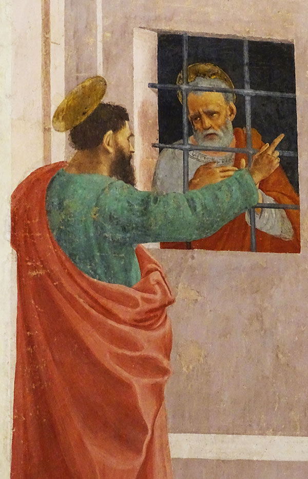 Filippino Lippi (1457-1504). Paulus besucht Petrus im Gefängnis. Capella Brancacci, Kirche Maria del Carmine in Florenz.