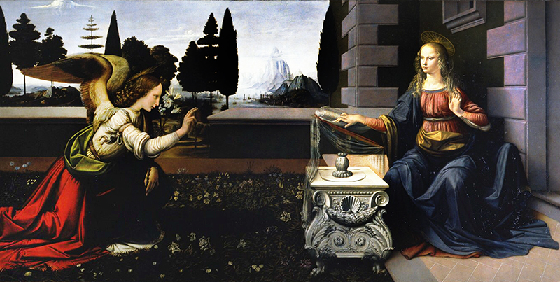 Vom Mittelalter bis in die Neuzeit setzen Künstler die Verkündigung in Form von Gemälden um. Sie nehmen sich dabei alle Freiheiten, lassen manchmal den Engel einfliegen und versehen ihn mit allerlei christlichen Symbolen.
