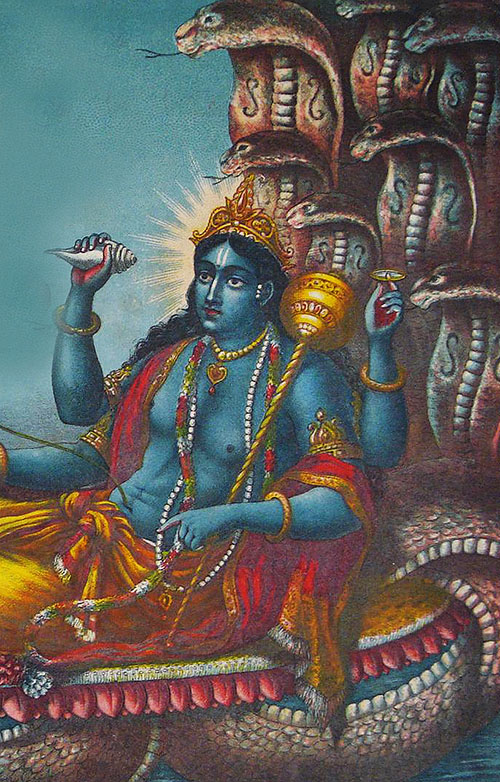 Für viele Hindus ist er der wichtigste Gott. Weil er als «Bewahrer» immer dann herabsteigt, wenn das Chaos auf der Welt überhand nimmt. Dann greift er rettend ein und sorgt für ein Gleichgewicht zwischen Gut und Böse. Er behütet die Götter und die Menschen und bekämpft das Böse.