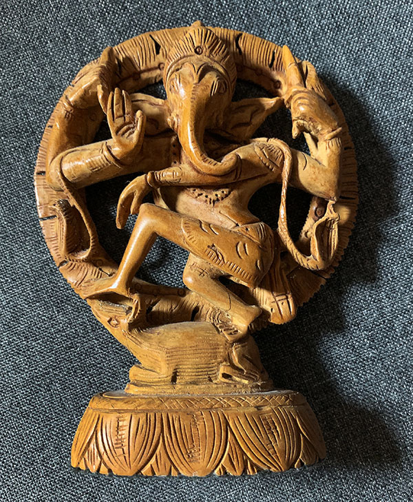 Ganesha, halb Mensch, halb Elefant. Lustig, schelmisch, weise und einer, der Hindernisse beseitigt. |