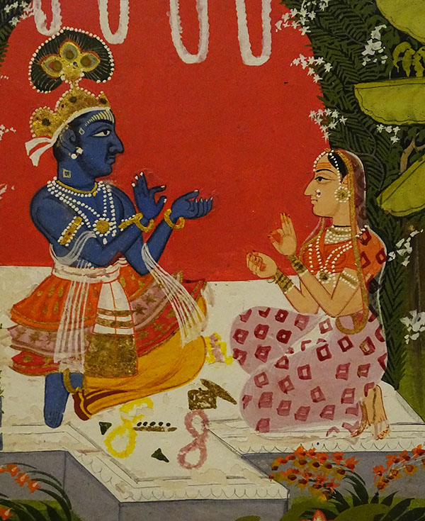 Seine Gefährtin, Geliebte und Gattin heisst Radha.