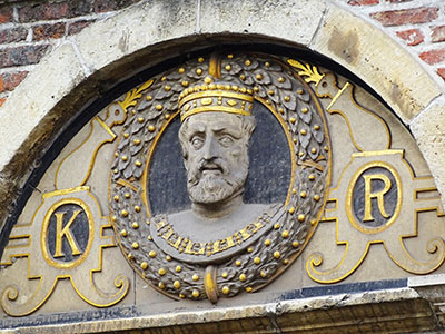 Porträt von Kaiser Karl V an einer Hausfassade in Gent. |