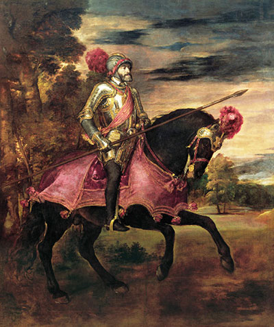 Die Situation beruhigt sich erst durch einen neuerlichen Frieden (Cambrai 1529). Frankreich darf die altburgundischen Gebiete behalten, verliert aber die italienischen Territorien. Bild: Tizian (1490-1576). Kaiser Karl V zu Pferd in Mühlberg, 1548. Museo del Prado, Madrid.