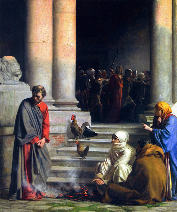 Eine berühmte Geschichte, in der Jesus zu Petrus sagt: «Ehe der Hahn kräht, wirst du mich dreimal verleugnen». Petrus entgegnet: Niemals werde ich dich verleugnen!