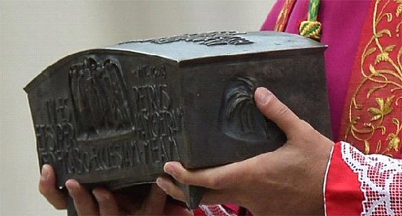 Papst Franziskus präsentiert die Petrus-Reliquien