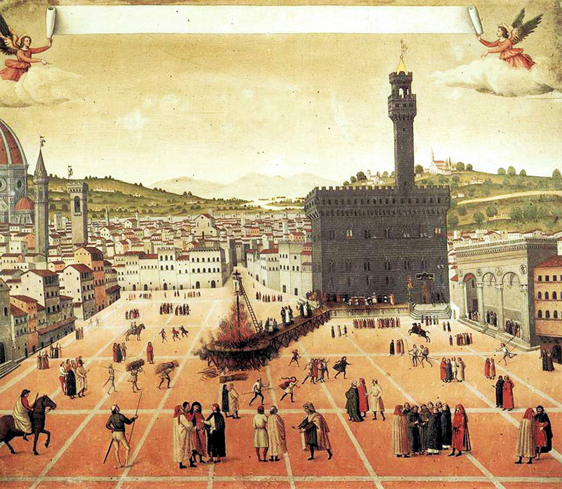 Er wird zum Tode verurteilt. Am 23. Mai 1498 wird er gehängt und verbrannt. Öffentlich, auf der Piazza Signoria von Florenz.