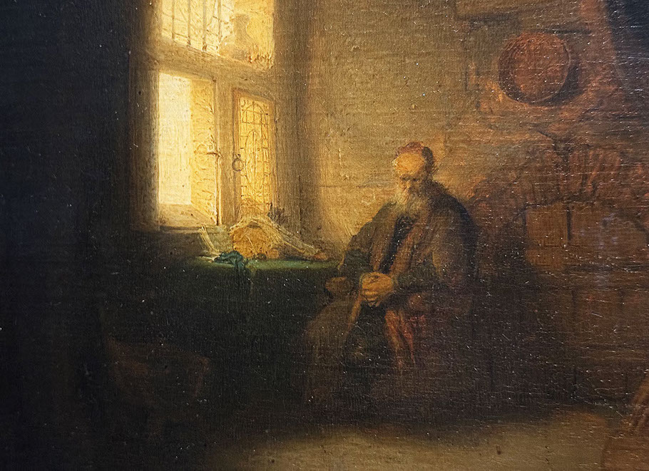 Rembrandt (1606-1669). Philosoph in Kontemplation, 1632. Detail. Musée du Louvre Paris.