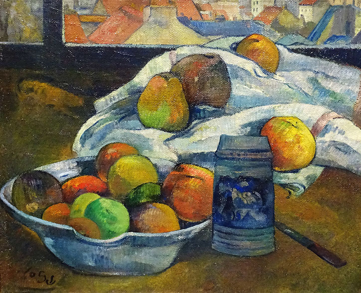 1890-Paul Gauguin (1848-1903). Bowl of Fruit and Tankard before a Window, 1890.