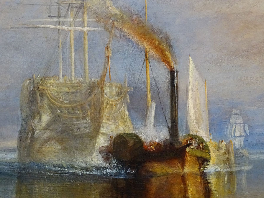 1838-William Turner (1775-1851). The Fighting Temeraire tugged to her last berth to be broken up, 1838. Detail.