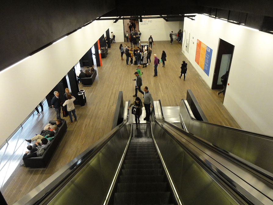 Rolltreppe zur permanenten Sammlung im alten Teil, im «Boiler House».