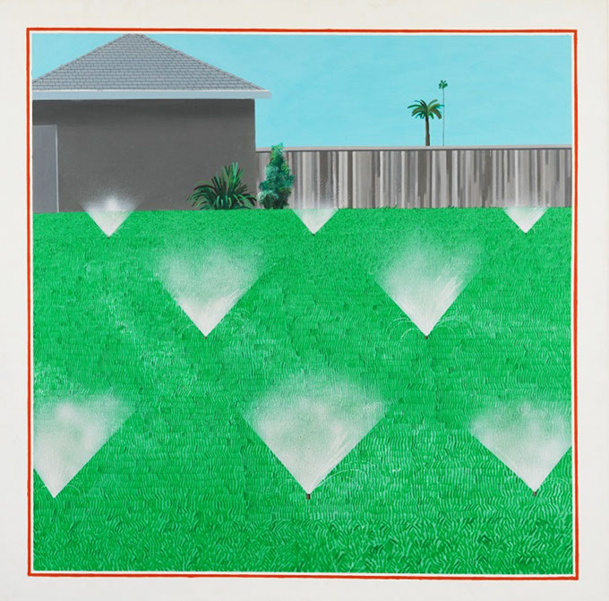 David Hockney (1937). A Lawn being sprinkled, 1967. Fotografiert ab Postkarte.