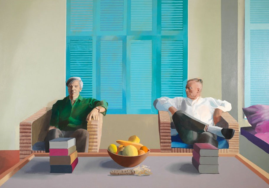 David Hockney (1937). Christopher Isherwood and Don Bachardy, 1968. Fotografiert ab Postkarte.