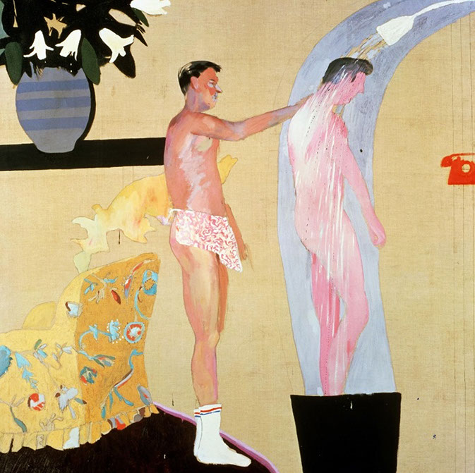 David Hockney (1937). Domestic Scene, Los Angeles, 1963. Private Collection. Fotografiert ab Postkarte.