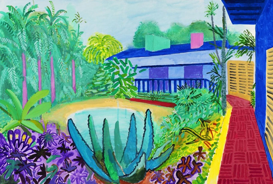 David Hockney (1937). Outpost Drive, Hollywood, 1980. Fotografiert ab Postkarte.