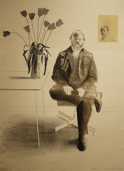 David Hockney (1937). Henry seated with tulips, 1976. British Museum London.