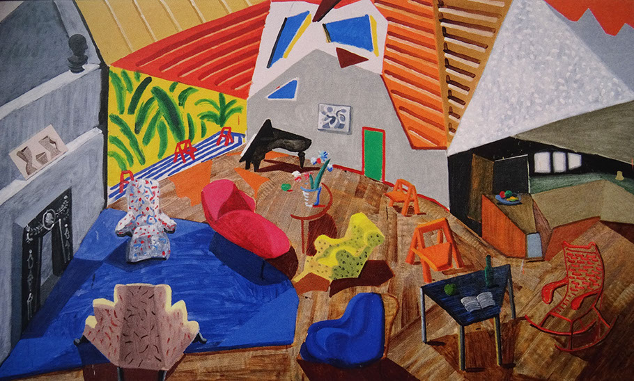 David Hockney (1937). Large Interior, Los Angeles, 1988. Fotografiert ab Postkarte.
